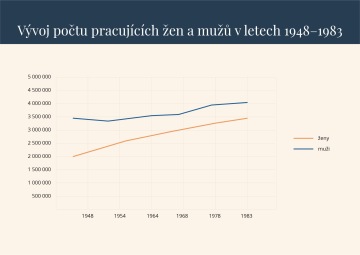 Pro celé období moderních československých dějin si zaměstnané ženy kladou jednu zásadní otázku: Jak skloubit rodinu se zaměstnáním? Práce ve vlastní domácnosti nebyla nikdy placená a byla tudíž brána jako neproduktivní. Po dlouhá léta byla přisuzovaná hlavně ženám; muži se na ní podíleli pouze okrajově.