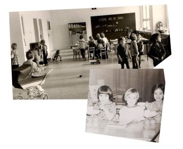První školní den v nové MŠ, Havlíčkova ul., rok 1976 (nahoře)
